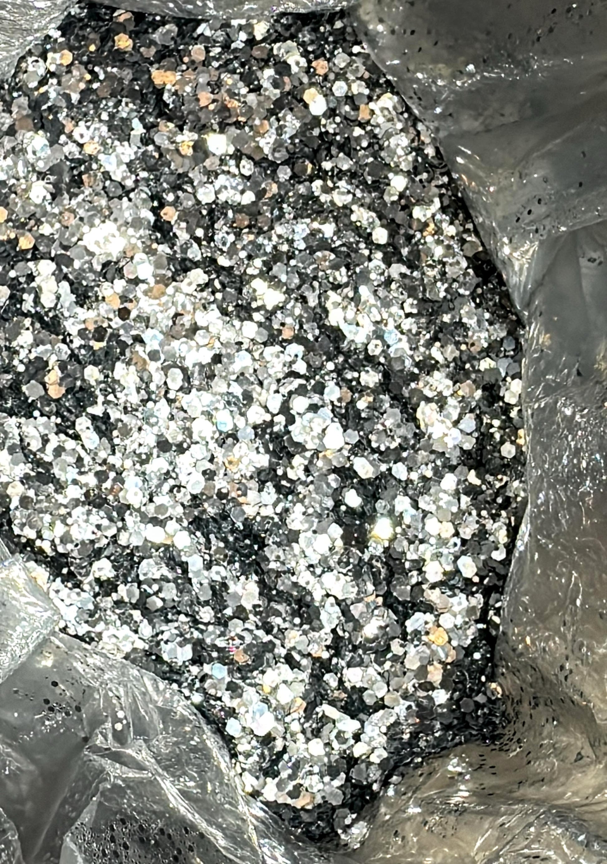 Meet Sterling Bear, where sophistication meets shimmer. This 2oz chunky silver glitter captures the brilliance of polished metal and the allure of moonlight reflections. Its mix of mirror-bright silver tones and deep shadowy undertones gives off a timeless, luxurious sparkle that elevates any project.